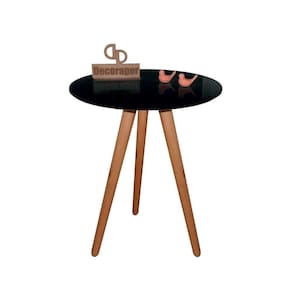 Mesa Tripé De Canto Ou Lateral Laqueada com Vidro 70cm