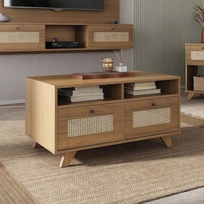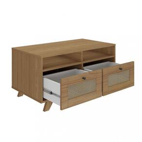 A Mesa de Centro Trama combina beleza visual com qualidade e funcionalidade. Com sua frente almofadada e acabamento em pintura 3D palha, oferece uma estética única. Possui amplo espaço para decorações favoritas e duas gavetas espaçosas com corrediças telescópicas para facilitar o acesso aos objetos essenciais. Os pés de MDF de 25mm garantem robustez e adicionam um toque moderno ao design. Valorize sua sala de estar com este móvel que equilibra forma e função de maneira excepcional.