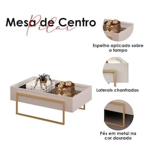 Começou a montar sua sala? Então apresentamos para você esta bela mesa de centro da linha Pilar. Seu tampo com espelho aplicado mais sofisticação. As laterais chanfradas garantem um acabamento refinado e harmonioso, enquanto os pés em metal na cor dourado dão um toque de modernidade e charme, além de oferecer resistência e estabilidade. Fabricada pela DJ Móveis, é desenvolvido em MDP/ MDF de alta qualidade, derivados de madeira de reflorestamento, reforçando o compromisso com a sustentabilidade sem abrir a mão da durabilidade. Sendo uma peça ideal para quem busca combinar elegância e funcionalidade para compor sua sala com estilo e bom gosto. Confira e aproveite!
