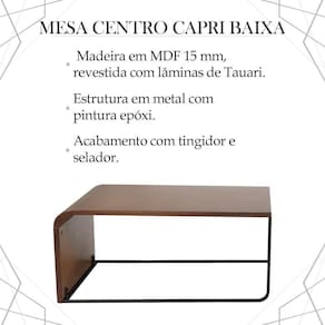 Mesa De Centro Baixa Madeira Pinhão Base Metal, é um item indispensável na sua decoração, por compor funcionalidade e charme para tornar o seu ambiente muito mais elegante. Estrutura em metal com pintura epóxi e MDF 15 mm revestido em lâmina tauari. Composta por madeira em MDF, produzido em lâmina de tauari e acabamento com tingidor e selador, e sua base é reforçada com pés em metal com pintura epóxi. Suporta até 30 Kg distribuídos. Uma peça robusta, arrojada e resistente, que combina facilmente com qualquer tipo de decoração. Este móvel chegará em sua casa separado em 01 volume.