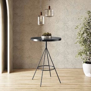 A estrutura em aço com acabamento resistente sustenta com firmeza o tampo de madeira revestido, criando um contraste moderno que conversa bem com qualquer ambiente — da varanda ao cantinho do café. Com altura ideal para uso com banquetas, ela traz ainda um apoio circular para os pés, garantindo conforto extra em cada uso.
