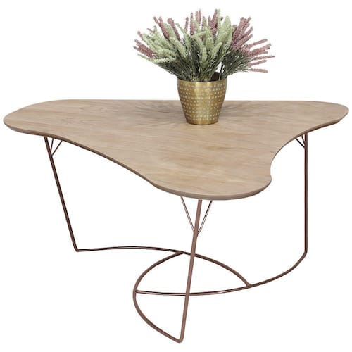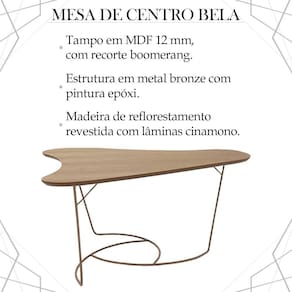 Mesa De Centro Boomerang Madeira Amêndoa Base Metal Cobre, é um item indispensável na sua decoração, por compor funcionalidade e charme para tornar o seu ambiente muito mais elegante. Estrutura em metal com pintura epóxi e MDF 12 mm revestido em lâmina de madeira natural cinamomo com acabamento fosco. Composta por tampo em MDF com recorte diferenciado em formato boomerang, produzido em lâmina de madeira natural cinamomo e acabamento fosco, e sua base é reforçada com pés em metal cobre com pintura epóxi. Suporta até 30 Kg distribuídos. Uma peça robusta, arrojada e resistente, que combina facilmente com qualquer tipo de decoração. Este móvel chegará em sua casa separado em 02 volumes.