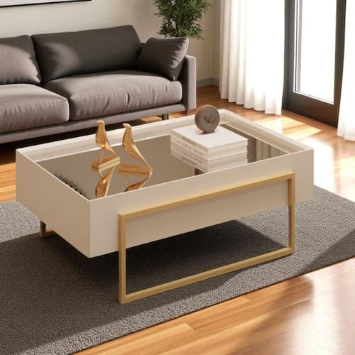 Mesa De Centro Com Tampo Espelhado E Pés Em Metal Dourado Kika Off White - Mabe Magazine
