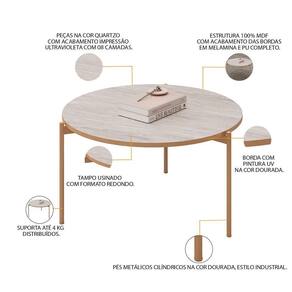 Transforme sua sala de estar com sofisticação e charme com a Mesa De Centro Decorativa Sala de Estar Industrial Ellie D05 Quartzo, da Lyam Decor.