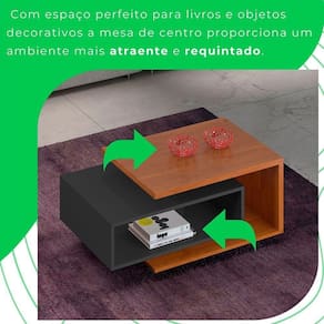 Mesa De Centro Diva Candian Jcm Movelaria Cinamomo Com Grafite Mesa de Centro Diva Candian JCM Movelaria. Produto de otima qualidade com chapas de 15mm e 25mm. Movel moderno com cores atuais que dao charme a sua sala. Caracteristicas do Produto: Marca: JCM Movelaria Modelo: Diva Material Principal Moveis; MDP Material Da Porta; MDP Quantidade de gavetas: Nao possui Escala da Brilho; Semi-Fosco Acabamento da Porta; Pintura Escala de Brilho da Porta; Semi-Fosco Necessita Montagem; Sim Marca; JCM Movelaria Ltda Estilo; Moderno Sapatas Niveladoras; Nao Pes regulaveis: Nao Complexidade da Montagem; Baixa Sistema de Montagem; Parafusos Recomendacoes de Uso, Manutencao e Limpeza; Limpeza com pano macio e levemente umedecido. Nao utilizar solventes a base e de inflamaveis. Nao utilizar produtos abrasivos.