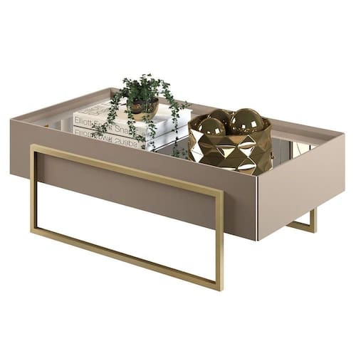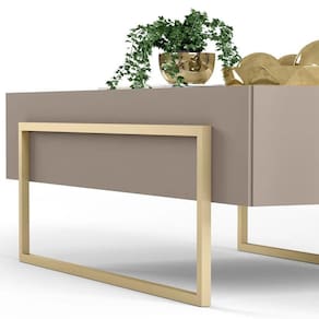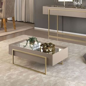 Para se criar uma sala de estar moderna e elegante é indispensável decorá-la com itens que traduzam esses adjetivos em seu design, assim como a Mesa de Centro Suri, da DJ Móveis. Com a base metálica que remete ao estilo industrial, essa mesa ganha sofisticação graças ao acabamento com pintura epóxi dourada, criando um ar mais clean. Para completar, o tampo em MDF ganha aplique de espelho, seguindo as últimas tendências de decoração.