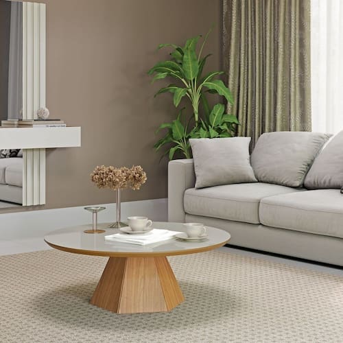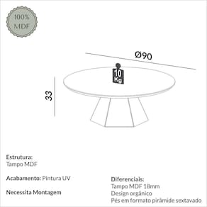 Mesa de centro 90cm de diametro cor off white com pés freijo madeirado, produzida 100% mdf, acabamento pintura UV 7 camadas, alta durabilidade, pés em formato hexagonal, combina com os demais produtos de nossa linha de produção Produto Montado: Sim Acabamento: Pintura UV Acabamento do Tampo: Pintura UV Ambiente Principal: Sala de Estar codigo_ean: 7900288114105 Complexidade da Montagem: Média: pode ser montado por mais de uma pessoa e/ou necessite de maior conhecimento para montagem Cor: FREIJO COM OFF WHITE Cor do Produto: FREIJO COM OFF WHITE Escala de Brilho: Brilhante Espessura do Tampo: 18 mm Extensível: Não Formato da Mesa: Redondo Itens Inclusos: 1 Mesa, Acessorios de Montagem Manual de Montagem e Instalação: https://product-hub-prd.madeiramadeira.com.br/992337/documents/3a8b29ee-c3f5-4409-8d97-f7be4de080d92817883378117441390169448.pdf Marca: Dalla Costa Material do Tampo: MDF Material Principal: MDF Medida do Tampo (L x C x E): 90x90 Necessita Montagem: Sim Origem do Produto: Nacional Peso: 13,5 kg Possui Gavetas: Não Possui Portas: Não Possui Prateleiras: Não Possui Rodízio: Não Recomendações de Uso, Manutenção e Limpeza: Pano seco Sistema de Montagem: mini fix Suporta Até (kg): 10 kg