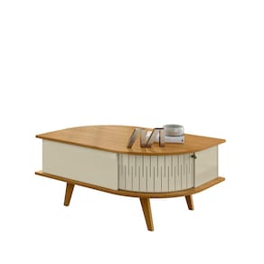 A Mesa de Centro Indianápolis é projetada para adicionar funcionalidade e estilo à sua sala de estar. Possui puxadores na cor bronze que harmonizam com as curvas do móvel, cujo formato lembra uma folha de árvore. Seu grande diferencial são as duas portas flexíveis em MDF que deslizam acompanhando a curvatura, permitindo armazenar objetos no interior.