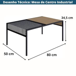 Produto: Mesa de Centro Industrial York Artesano Retangular 80 cm (largura) em MDP Hanover Aço Preto | Cor: Hanover, Preto | Materiais: MDP, Aço | Tonalidade: Marrom | Estilo de Decoração: Industrial | Cômodo Indicado: Salas | Linha: York | Montagem: Desmontado | Marca: Artesano | Peso Suportado (kg): 10.00 | Área de : Interna | Garantia (tempo): 6 meses | Garantia (descritivo): Garantia contra defeitos de fabricação de 06 meses. Consulte as s políticas. | Peso (kg): 4.70 | Medidas: Largura (cm): 80.00 | Medidas: Profundidade (cm): 50.00 | Medidas: Altura (cm): 34.50 | Entregue Montado?: Não | Possui Manual de Montagem?: Acompanha o Produto | Origem do Produto: Nacional | Conservação e Manutenção: Limpeza com pano úmido em solução de água e detergente neutro. Secar em seguida. | Acabamento: Fosco | Atributos: Elegante, Durável, Rústico, Resistente