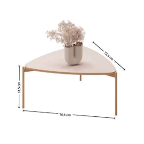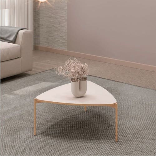 Apresentamos a Mesa de Centro Isa 76 cm da Dj Moveis, possui um design moderno e sofisticado, para trazer mais leveza e sofisticação para seu ambiente. Seu tampo é usinado com formato triangular e cantos arredondados, adornado por uma pintura PU na cor dourada. Produzida com matéria-prima de qualidade, sua estrutura é reforçada com pés metálicos cilíndricos na cor dourada, criando uma composição harmônica com os outros elementos do produto e seguindo as mais atuais tendências de decoração, além de facilitar a limpeza.