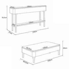 Dimensões da mesa de centro: 100 cm(L) x 32 cm(A) x 60,5 cm(P);