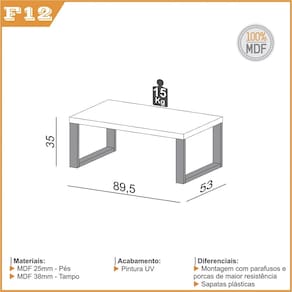 Itens Inclusos: 1 Mesa de Centro (F12)