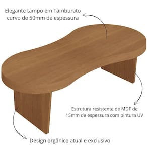 Seu tampo curvo em Tamburato de 50mm traz um toque de sofisticação, enquanto o design orgânico garante leveza e fluidez.