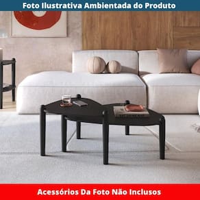 Mesa de Centro Orgânica Artesano 60 cm (Largura) em MDP Nero (Preto) e Pés em Madeira Maciça