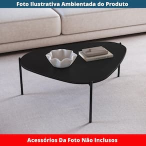 Mesa de Centro Orgânica Artesano 77 cm (Largura) em MDP Nero (Preto) e Pés em Aço Preto