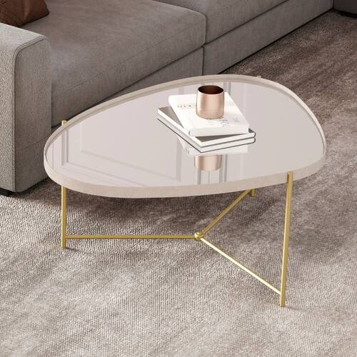 Mesa de Centro Organica Espelhada Alamanda JB Moveis A Mesa de Centro Organica Espelhada e a escolha certa para quem quer dar um toque moderno e sofisticado a decoracao. Seu tampo com espelho valoriza o ambiente e cria sensacao de amplitude, enquanto a borda em courinho traz acabamento diferenciado e elegante. O design organico, com formas suaves e contemporaneas, combina facilmente com salas de estar de diferentes estilos. Para completar, ela possui pes de metal desmontaveis, que facilitam a montagem e o transporte, disponiveis em cores que destacam ainda mais o visual da peca.