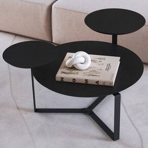 Três tampos redondos com diâmetros diferentes, estilo orgânico.