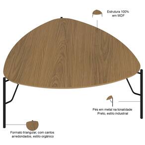 A Mesa de Centro Baixa Alef, da Lyam Decor, reinventa o conceito de móveis para sala de estar e living com seu formato triangular e cantos arredondados, unindo o estilo orgânico ao industrial através de pés metálicos robustos.