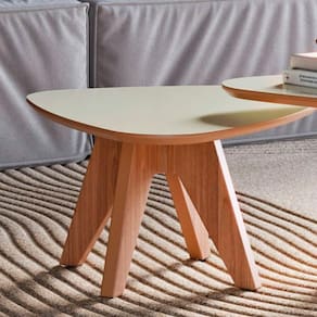 Design orgânico com cantos arredondados e tampo chanfrado.
