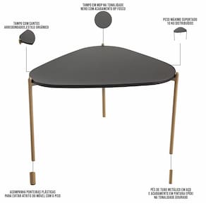 Pés de tubo metálico em aço e acabamento em pintura epóxi na tonalidade Dourado.