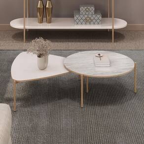 Com um design moderno e sofisticado, a Mesas de Centro Para Sala Pés Metálicos Zira e Nala Quartzo/Off da Mpozenato traz leveza e elegância ao ambiente.