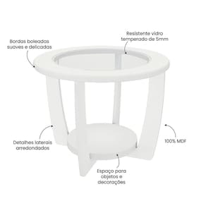Mesa De Centro Redonda 60cm Com Vidro Multimóveis Cr45306 Branco Branco Combinando , estilo e durabilidade, a Mesa de Centro Redonda 60cm com Vidro Multimóveis CR45306 é perfeita para agregar sofisticação ao seu espaço de convivência. - Detalhes Laterais Arredondados: Destaque-se com estilo! Os detalhes arredondados oferecem e um toque contemporâneo, elevando o visual da sua sala. - Vidro Temperado 5mm: Durabilidade em destaque! O tampo de vidro temperado não apenas adiciona elegância, mas também garante resistência e fácil manutenção. - 100% MDF: Qualidade garantida! Com 100% de material em MDF, essa mesa de centro é robusta, estável e resistente ao longo do tempo. - Design Versátil: Combine com tudo! Seu design moderno e versátil se integra perfeitamente a diferentes estilos de decoração, proporcionando um toque de sofisticação.