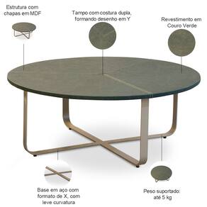 MDF | AçoA Mesa de Centro Amin 88cm é a fusão perfeita entre o estilo industrial e o luxo contemporâneo. Seus pés em aço dão um ar moderno e robusto, enquanto o tampo redondo em couro com costura dupla em padrão Y adiciona elegância e personalidade. Em outras palavras, é uma mesa de centro industrial orgânica perfeita para sala de estar, living ou escritório, pois une resistência e design em um equilíbrio único.