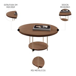 A Mesa de Centro Redonda Pés Metálicos Sky Castanho, da HB Móveis tem um design sofisticado e contemporâneo, combinando diferentes materiais de forma harmoniosa, criando uma peça leve e ao mesmo tempo marcante.