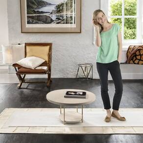 Com 60 cm de diâmetro e 30,5 cm de altura, é ideal para salas compactas ou para criar composições estilosas com outros móveis. Seu design contemporâneo e acabamento fosco texturizado permitem harmonizar com diversas decorações, do clássico ao moderno.