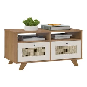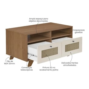 Mesa De Centro Retangular 2 Gavetas 91cm Retrô Multimóveis Cr45313 Cinamomo/off White Cinamomo/off White