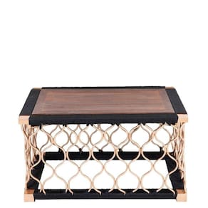 Mesa De Centro Com Tampo De Madeira Em Alumínio Bronze E Corda Náutica Para área Externa Trama