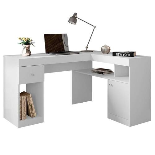 Trabalhar e estudar agora ficou muito mais fácil. A mesa Nilo é ideal para seu escritório, Home Office e porque não no quarto para estudo. Sua estrutura funcional em formato L permite que seja posicionada no canto da parede, otimizando espaço. Inclui 1 porta, 1 gaveta, 2 nichos e prateleira para organizar seus itens.