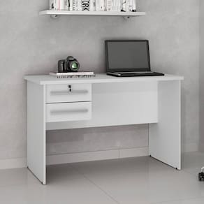 Mesa de Computador Escrivaninha 2 Gavetas Byte Quer um móvel que não ocupe tanto espaço e que você pode estudar ou trabalhar? Seu quarto, escritório ou home office ficará ainda mais organizado e bonito com a Mesa de Computador Escrivaninha 2 Gavetas Byte! Confeccionado com materiais de excelente resistência e alta qualidade, o modelo moderno conta com espaço para você organizar os papeis e objetos de escritório. Leva!\nMEDIDAS\nAltura 75 cm\nComprimento 116 cm\nLargura 60 cm\nCARACTERÍSTICAS\nModelo Byte\nTipo do produto Mesa de Computador\nAmbiente Diversos\nFabricante Valdemóveis\nQuantidade de Gavetas 02\nTipo de Gaveta Externa\nTipo de Corrediça Telescópica\nGaveta Possui Chave Sim, 01\nEstilo Moderno\nAcabamento Pintura U.V.\nEstrutura MDP/MDF\nNecessita Montagem Sim\nAcompanha Manual de Instalação Sim\nINFORMAÇÕES IMPORTANTES\nObjetos decorativos que porventura apareçam na foto, não acompanham o produto. Não nos responsabilizamos pela montagem/instalação dos produtos.\nMontagens, desmontagens e instalações são responsabilidades do cliente. Indicamos que contrate uma empresa de montagem ou um montador de sua confiança.\nAlém disso, favor verificar se os pés e acessórios estão dentro do forro inferior do produto. Em suma, todas as informações divulgadas sobre o produto são de responsabilidade do Fabricante.\nAs cores do produto podem variar de acordo com o seu monitor, a iluminação do ambiente em que você está e até mesmo a sua percepção visual. Além da cor, pequenos detalhes e acabamentos podem não ficar evidentes na foto, por isso as imagens são meramente ilustrativas.