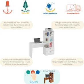 R - A Escrivaninha está disponível nas seguintes combinações: Branco com acabamento brilhante e Cinamomo com acabamento fosco.