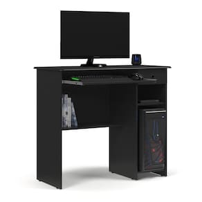 Essa Mesa De Computador Com Gaveta Suporte De Teclado E Nichos irá agregar muito mais charme e requinte à seu ambiente! Com designer moderno, ela possui amplo espaço interno que irá acomodar perfeitamente qualquer tipo de objeto. Dimensões do produto montado: Altura: 77 cm Largura: 90 cm Profundidade: 40 cm Características: - Material MDP - Cor preto - Nicho - Gaveta - Prateleira Itens Incluso: 01 Mesa. Kit completo para montagem. Manual de montagem. Observações: - Não nos responsabilizamos pela montagem do produto. - Sistema de Montagem: Parafusos, Cavilhas e Tampos. - É recomendado que a montagem seja feita por um profissional qualificado. - As imagens indicam uma sugestão de uso e são apenas ilustrativas, os objetos decorativos não estão inclusos. - Ao iniciar a montagem, forre o chão com o papelão das embalagens para proteger as peças de arranhões. Instruções e Cuidados: Limpar com pano seco, manter em lugar livre de umidade, ao abrigo de exposição direta ao sol.