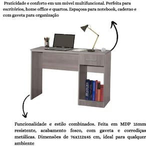 Essa mesa foi projetada para se adaptar a diferentes ambientes, seja na recepção, no escritório, no home office ou mesmo no quarto. Com um tampo espaçoso, ela oferece espaço suficiente para acomodar seu notebook, caderno, luminária e outros itens essenciais da sua rotina diária.