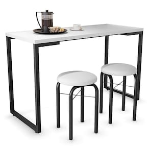 Esse kit é essencial e você vai se encantar com a praticidade. Conheça a Mesa de Cozinha Bistrô Porto Branco 120cm com 2 Banquetas Industriais Maviê Branco/Preto, da Mpozenato!