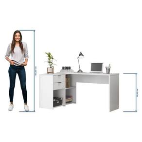 ALTURA (CM): 75,9 | LARGURA (CM): Mesa Reta 200,0/ Mesa em L 90,0 | PROFUNDIDADE (CM): Mesa Reta 45/ Mesa em L 148,6 | Cômodo Indicado: Escritório | Produto: Mesa de Escritório | Tonalidade: Branco | Conteúdo da Embalagem: 1 Mesa de Escritório, Kit Ferragens e Manual de Montagem | Material: MDP | Cor: Branco