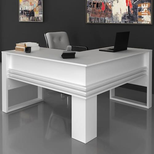 Mesa de Escritório Angular ME4145 Um escritório perfeito é aquele lugar onde você encontra tranquilidade e conforto para trabalhar com os acessórios mais adequados ao redor. Fabricada em MDP 15mm e com acabamento em BP o móvel conta com sapatas niveladoras, seu tampo suporta até 15kg além de um amplo espaço sobre a bancada para que você tenha uma melhor organização.