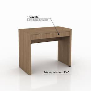 Características - Cor: Amêndoa. - Estrutura em MDP. - Acabamento em BP. - 1 Gaveta. - Costas na cor do móvel. - Pés 4 sapatas em PVC. - Fundo das gavetas de fibra 3 mm. - Corrediças metálicas. - Suporta: Topo até 8 Kg | Gaveta 3 kg. - Móvel entregue desmontado.