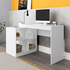 A Mesa com Estante Lateral oferece versatilidade e organização para quem precisa de um espaço funcional e adaptável. Seu design inteligente permite montagem reta ou em formato de L, atendendo às diferentes necessidades e ambientes, seja no escritório, home office ou área de estudos. A estante lateral dispõe de prateleiras que facilitam o armazenamento de livros, objetos decorativos e materiais de trabalho, mantendo tudo ao alcance das mãos. Fabricada em MDP resistente, combina durabilidade, praticidade e estilo em um móvel que se adapta perfeitamente ao seu espaço. CARACTERÍSTICAS TÉCNICAS: - Estrutura em MDP de 15 mm - Acabamento Fosco na cor Branco - Estante Lateral com 4 Nichos - Duas Opções de Montagem - Suporta até 15 kg INFORMAÇÕES TÉCNICAS: - Montagem Reta: Altura: 75 cm Largura: 164 cm Profundidade: 45 cm Peso: 29 kg - Montagem em L: Altura: 75 cm Largura: 140 cm Profundidade: 68,5 cm Peso: 29 kg INFORMAÇÕES ADICIONAIS: -ATENÇÃO: Não trabalhamos e não nos responsabilizamos pela montagem do móvel. Antes da montagem conferir se o produto está de acordo com o que comprou, produto montado e danificado pela montagem não será aceito troca. -As imagens ambientadas são meramente ilustrativas e podem apresentar itens que não compõe o produto. As cores do produto podem variar de acordo com o monitor, a iluminação do ambiente ou sua percepção visual. -Limpeza: Deve ser feita com pano macio e seco ou levemente umedecido com água e sabão neutro. Não devem ser utilizados abrasivos como palha de aço e objetos cortantes. Garantia para defeitos de fabricação conforme Código de Defesa do Consumidor.