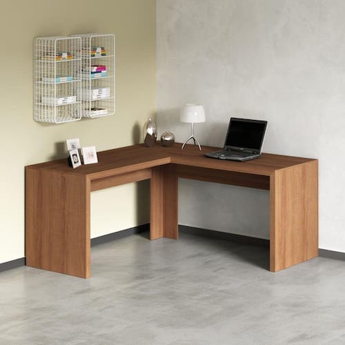 A Mesa de escritório de canto em L ME4116 da Tecno Mobili é a solução ideal para seu ambiente e para desempenhar com alta performance suas tarefas diárias e seu trabalho. Estrutura é com MDP, fornecendo melhor resistência à empenamentos, impactos e maior estabilidade.