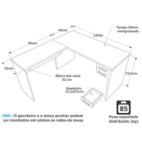 - Medida Mesa Auxiliar (cm): L: 90; P: 42; A: 73,5