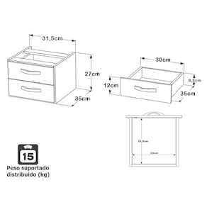 - Gaveteiro com 2 gavetas, acompanha corrediças e todos acessórios para montagem.