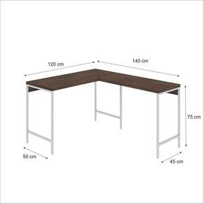 Mesa de Escritório em L Estilo Industrial 120x140cm Active Nogal / Est.Branca - Marrom
