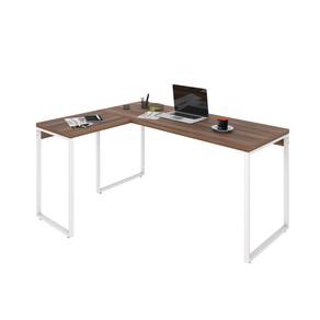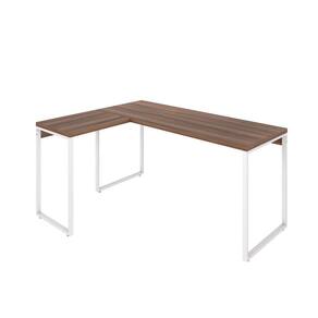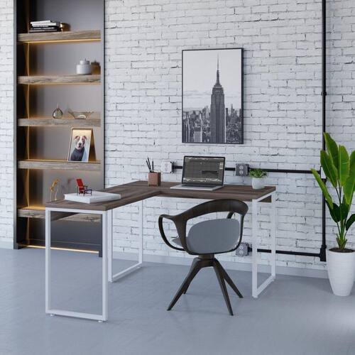 Mesa de Escritório em L Estilo Industrial 120x150cm Kuadra Nogal / Est.Branca - Marrom