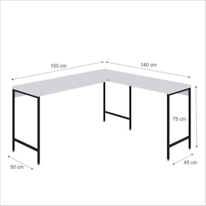 Mesa de Escritório em L Estilo Industrial 150x140cm Active Branco Chess/Preto
