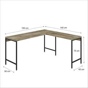 Mesa de Escritório em L Estilo Industrial 150x140cm Active Carvalho/Preto - Marrom