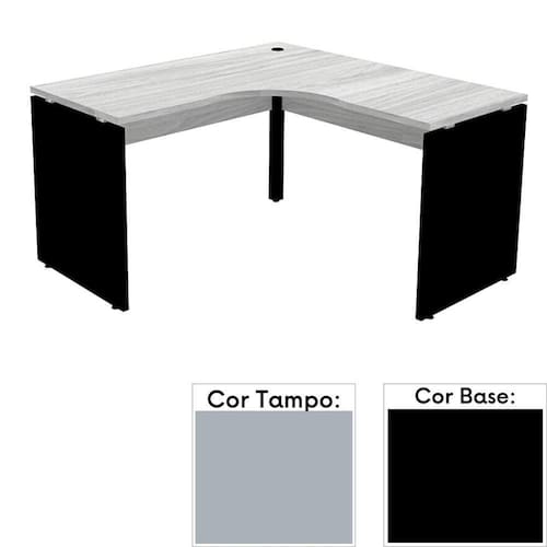 Mesa de Escritório em L Pé Painel PE25 em MDP 125 x 125 x 60 cm Cinza com Base Preta
