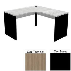 Mesa de Escritório em L Pé Painel PE25 em MDP 125 x 125 x 60 cm Cor Noce Naturalle e Base Preta - Marrom